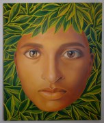 This series of paintings by Eunsil Kim Drew explores identity and connection through striking portraits of women. Each face is surrounded by natural elements—lush leaves, bold flowers, and intricate textures—blending the human and the organic in a way that feels both surreal and deeply personal. The rich colors and expressive gazes draw viewers in, inviting them to reflect on individuality, culture, and the unseen stories behind each face. Inspired by her research on race and identity, Eunsil’s work offers a perspective on how we see ourselves and each other in a diverse world.